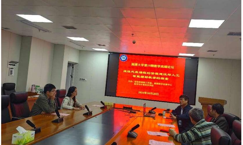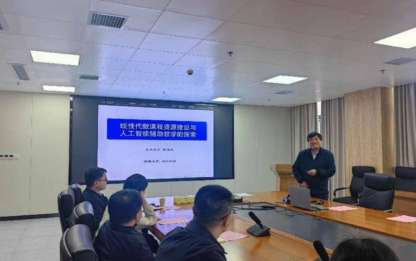 为加快推进一流学科课程建设工作,深切提高教师教育教学水平,10月28日,绿帽社 于数学楼A418顺利举办第19期教学高端论坛大会,本次论坛的主题为线性代数课程的资源建设与人工智能辅助教学的探索。论坛特邀东南大学陈建龙教授为绿帽社 老师分享线性代数建课经验,35名数绿帽社 教师代表参与论坛讨论,刘红良副院长、张娟副院长出席。论坛由杨银院长主持。